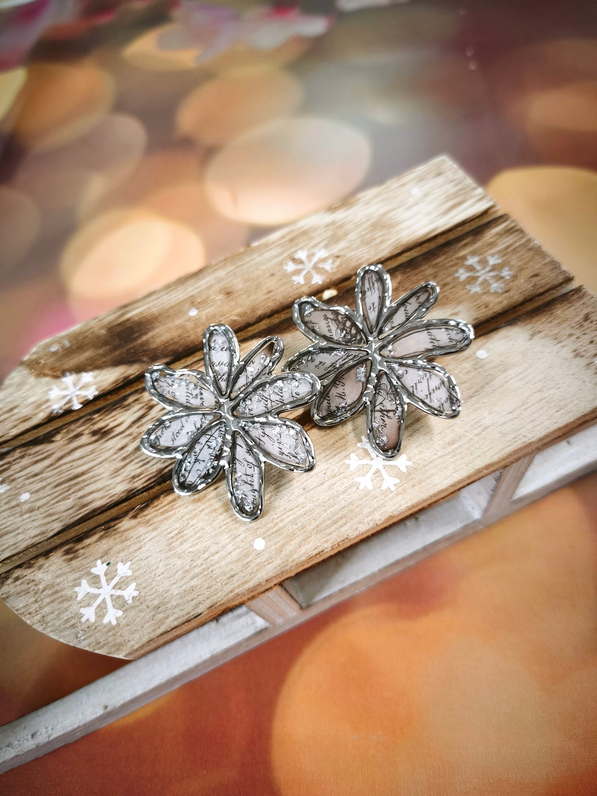Réalisées en acier inoxydable doré ou argenté, elles sont sublimées par de la résine transparente et  qui accrochent la lumière à chaque mouvement. Un bijou lumineux, féminin et plein de caractère.
